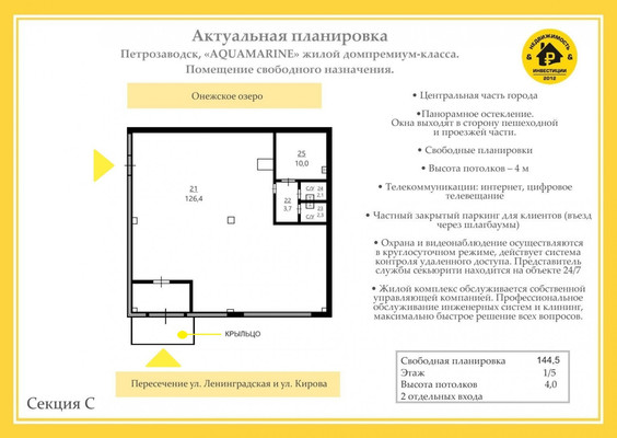 Компания "Недвижимость & Инвестиции" предлагает Вашему вниманию помещения свободного назначения в доме премиум класса AQUAMARINE, г. Петрозаводск, пер. Озерный, д. 2.ДОБРО ПОЖАЛОВАТЬ В МИР ЭЛИТНОЙ НЕДВИЖИМОСТИ ПЕТРОЗАВОДСКА.Пространство в «Aquamarine» предлагает все удобства городской жизни в шаговой доступности. Вы сможете легко и быстро добраться до городских учреждений, набережной, спортивных клубов, магазинов и ресторанов. Дом «AQUAMARINE» расположен в центральной части города Петрозаводск. Близость к основным деловым, социальным и туристическим объектам делают уникальным данное предложение на рынке недвижимости города.Компания «Недвижимость и Инвестиции» гарантирует вам лучшую цену и индивидуальный подход даже к самому требовательному клиенту.Не упустите свою возможность обладать собственным уголком рая на берегу Онежского озера. ОСНОВНЫЕ ПРЕИМУЩЕСТВА ОБЪЕКТА: Помещения расположены на 1 этаже жилого комплекса. Выполнена дизайнерская отделка. Площадь: от 192 кв.м. Есть помещения разной площади (до 373 м2). СТОИМОСТЬ МОЖНО УТОЧНИТЬ ПО ТЕЛЕФОНУ. Высота потолков: 4 м. Проведен интернет и цифровое телевидение. Рядом с входами закрытая парковочная зона для клиентов. Въезд/въезд через шлагбаум. Просторный холл для общения с гостями или партнерами на 1 этаже. Входные группы имеют панорамное остекление, окна выходят на пешеходную зону и автомобильную дорогу. Из помещения открывается шикарный вид на Онежское озеро. Панорамное остекление не только наполняет помещение естественным светом, но и добавляет ему роскоши. «Стеклянная стена» дарит потрясающий вид из окон на озеро на уровне 2 этажа. Установлена трехуровневая система охраны. Полная приватность. Будьте уверены в своей безопасности. Собственная управляющая компания гарантирует прозрачную оплату коммунальных услуг по городским тарифам, основываясь на индивидуальных приборах учета. Ежедневная уборка ...