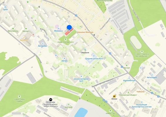 На карте: Республика Карелия, Петрозаводск, Жуковского (Сулажгора р-н) ул, 63а