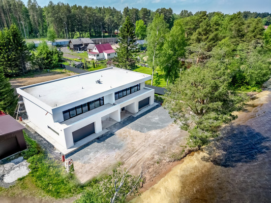 Компания "Недвижимость и Инвестиции" предлагает Вашему вниманию таунхаус в современном стиле на берегу Онежского озера в 20 минутах от г. Петрозаводск!!!! ГАРАНТИЯ ЛУЧШЕЙ ЦЕНЫ !!!!!! ПРЯМАЯ ПРОДАЖА ОТ СОБСТВЕННИКА !!!Уникальный проект с минималистичным дизайном, отделкой и мебелью, полностью готов для проживания!В 20 метрах от дома расположен один из самых красивых пляжей Онежского озера, окруженный сосновым бором. Уникальная возможность наблюдать красоту вдохновляющих рассветов и чарующих закатов прямо на горизонте из окон собственного дома. Местоположение: Республика Карелия, с. Деревянное (координаты: 61.609551, 34.648293).Кадастровый номер участков: 10:20:0060121:195, 10:20:0060121:198 + неоформленные 1,6 соткиКатегория земель: Земли населенных пунктов Вид разрешенного использования: Блокированная жилая застройка. Территориальная зона - Ж. Жилая зона. На участке располагается монолитный двухэтажный жилой дом. К продаже предлагается правая секция. Таунхаус, внутренняя отделка которого выполнена по эксклюзивному дизайнерскому проекту с применением дорогостоящих материалов. Дом построен профессионалами своего дела - все максимально качественно. Все системы имеют возможность выхода в интернет для настройки системы умный дом: отопление, вентиляция, привод гаражных ворот, дверь с электрозащелкой, видеодомофон с камерами наблюдения, имеется усилитель сигнала GSM в доме. Технические характеристики:— Монолитная технология строительства, что считается наиболее долговечной. — Общая площадь: 280 кв.м— Фундамент: монолитная плита— Материал стен: железобетон.— Водоснабжение: скважина с системой водоподготовки.— Водоотведение: станция биологической очистки.— Электричество: 15 кВт (есть возможность увеличить до 25 кВт). — Отопление: теплые водяные полы по всему периметру дома, включая гараж (электро-котел).— Кровля: мембрана ПВХ.— Окна: профильная система Alutech и мультифункциональные стеклопакеты. Панорамное остекление не только...